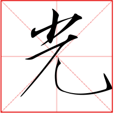 又如:为国争光;沾光;光宠(光荣;增光);光国(为国争光);光天(光辉达于天下);光隆(光辉隆盛);光烂(光辉明亮);光晶(光辉);光赫(光辉显赫)