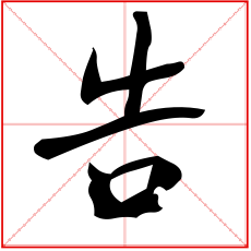 (会意。甲骨文字形,上面的“牛”,牛触人,角着横木,所以告人也。从口,从牛。本义:报告,上报)