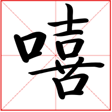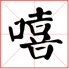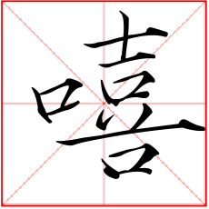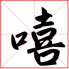 (形声。从口,喜声。本义:叹词。表示赞叹、悲叹或惊惧)