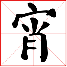 (形声。从宀(mián),肖声。从“门”表夜间昏暗。本义:夜晚)