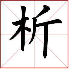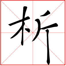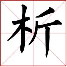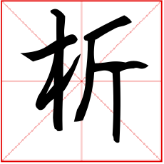 (会意。从木,从斤。用斧子劈开木头。本义:劈,劈木头)