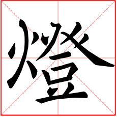 (形声。从火,登声。本写作“镫”。本义:置烛用以照明的器具。“镫”在古代还作“盛熟食的器具”解。隶变以后,作照明器具用的写作“燈”,而“镫”多作马鞍两旁的铁脚踏讲)