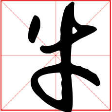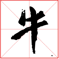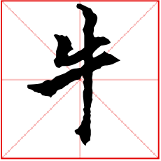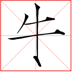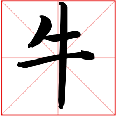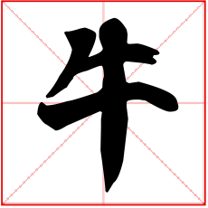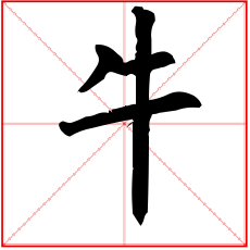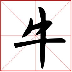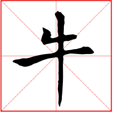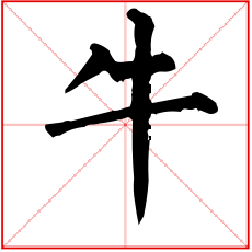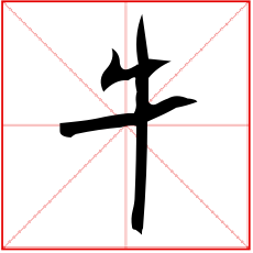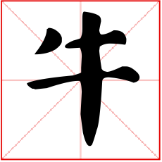 (象形。甲骨文字形作“牜”。中间一竖表示牛面,上面两竖加弯表牛角,下面两小撇表示牛耳)
