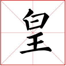 (象形。金文,象灯火辉煌形。上面的三点,象灯光参差上出之形;中间的部分象灯缸;下面的“土”是灯柱。“皇”即“煌”的古字。本义:灯火辉煌)