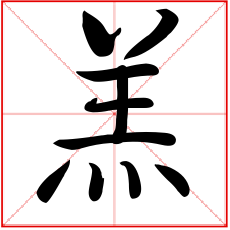 (会意。从羊,从火,下面的四点由“火”变来。甲骨文字形正象羊在火上。本义:小羊)