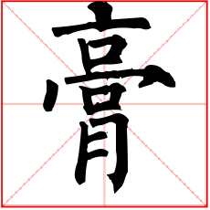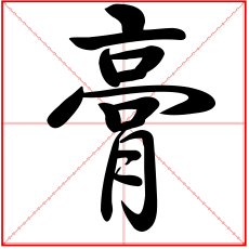 (形声。从肉,高声。从肉,表示与肉体有关。本义:溶化的油脂,无角动物的油脂)