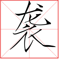 又如:袭衣(尸衣;也指古代行礼时穿在裼衣外面的上衣);袭玩(衣着器用)