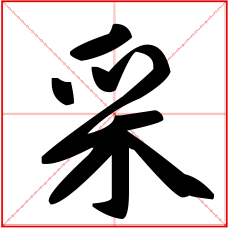 又如:采缯(彩色丝织品);采服(彩色的衣服);采章(绘有彩色图案的旌旗、车舆及服饰)